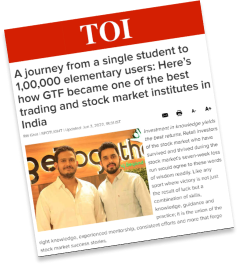 SUBSCRIBE NOWGTF is one of the best stock market institutes in India. Since 2019 we have been helping people to become pro traders, and the numbers are still growing. We are here to support you every step of your way to success by providing you with lifetime mentor support. Our vision is to make you a rule-based trader & a professional trader so that you can trade independently and confidently in the financial market. GTF (Get Together finance) is an ISO 21001:2018 certified Stock Market Institute. Till now, 3 lakh + students are already part of the GTF family. We are passionate about chart reading techniques to understand the price action deeply along with demand-supply so during the classes we can provide you with the maximum edge of success in your trading career. We assure you the last stop of your stock market doubts. Start your trading journey with GTF and become an independent trader.